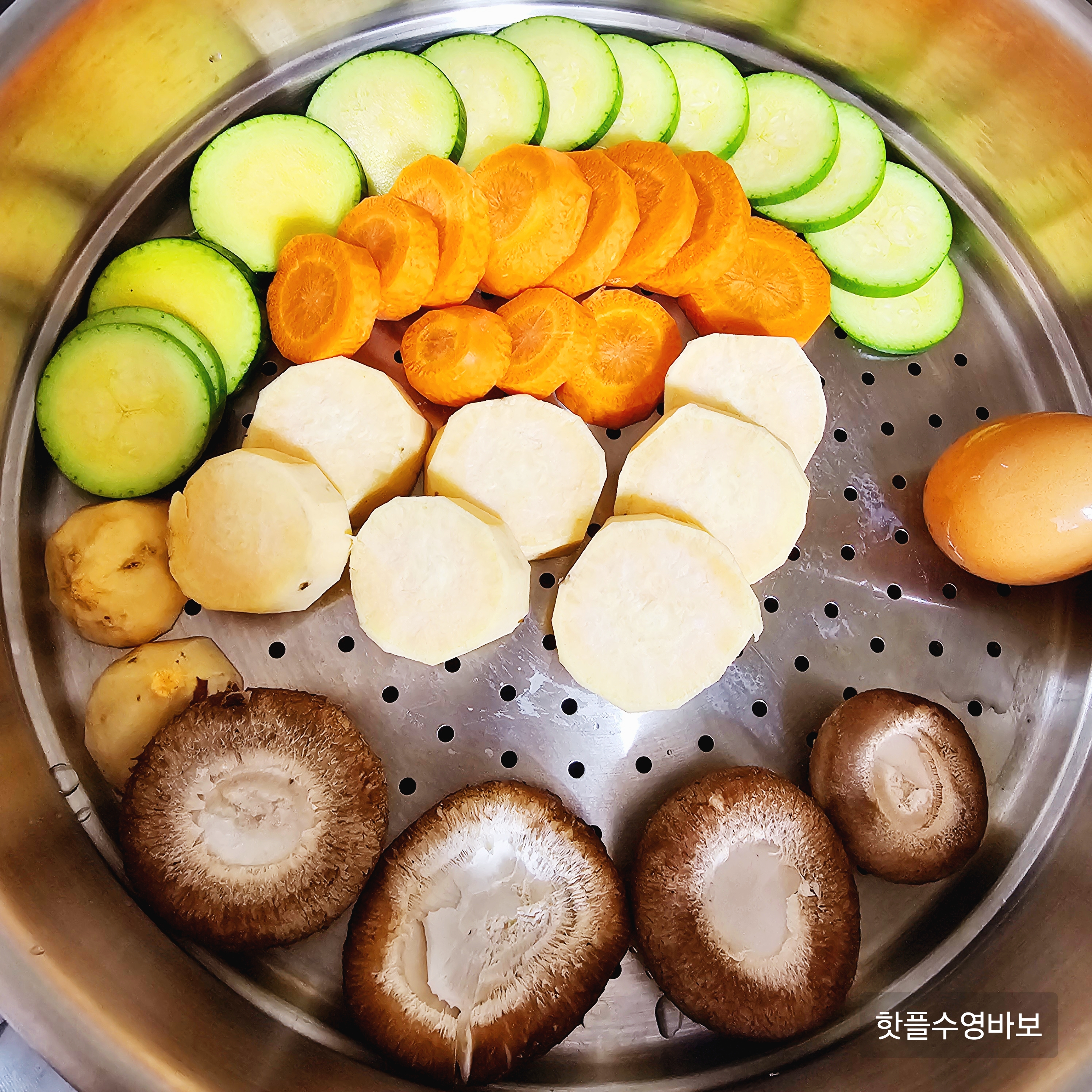 야채가 조금씩 다른 단맛이 조금씩 있는 게 느껴져서 신기했어요 찜을 하니까 맛이 잘 살아나더라고요